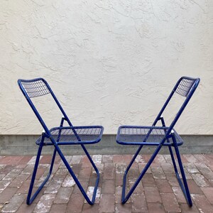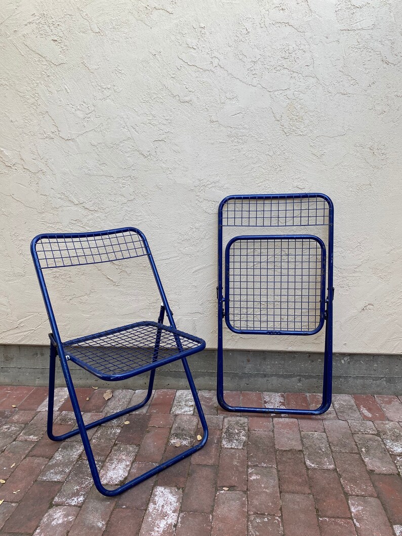 Vintage 1980 S Ikea Blue Metal Grid Folding Chairs Neils Etsy